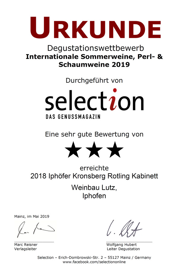 Wir freuen uns über die aktuellen Auszeichnungen bei den "selection" - Degustationswettbewerben 2020 |